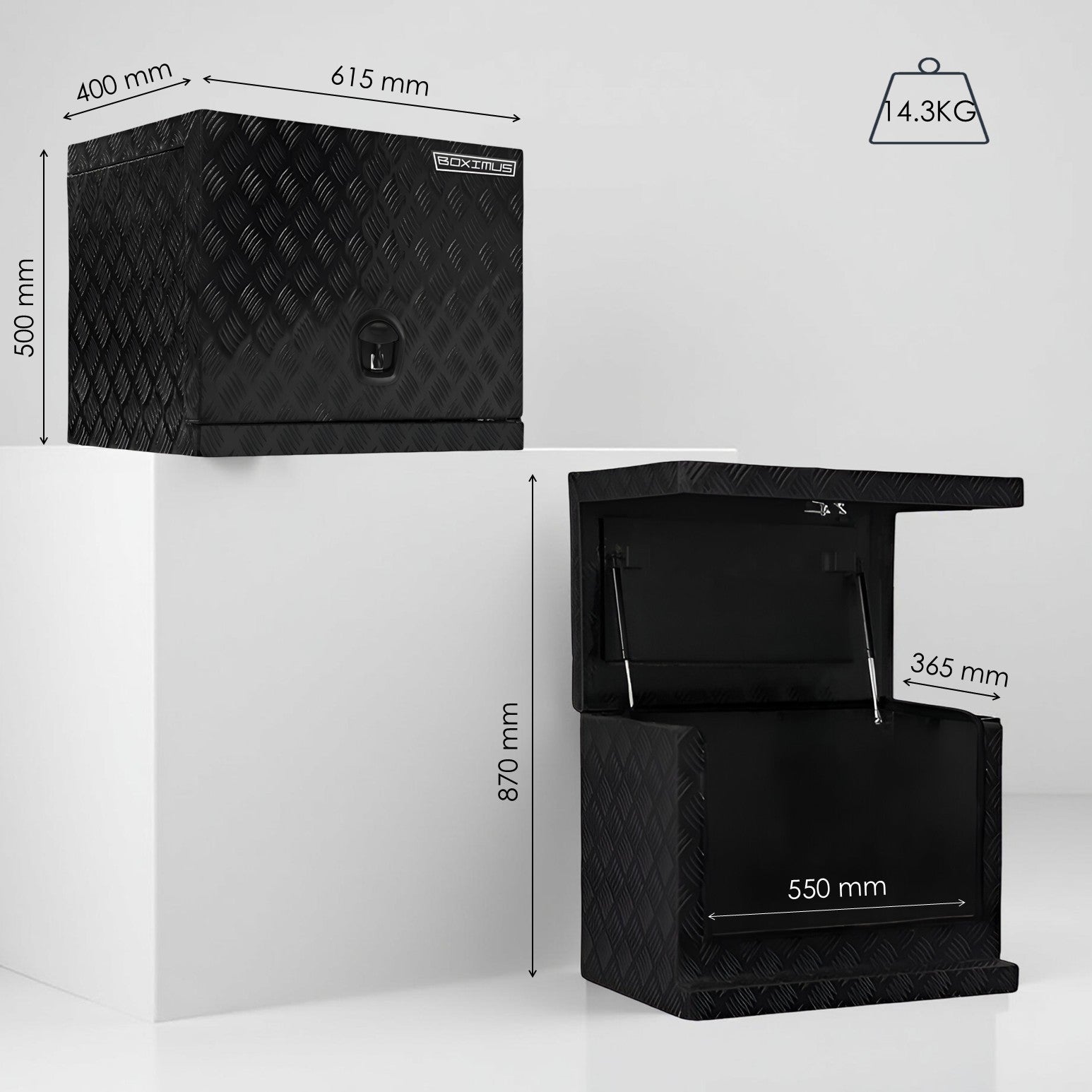 All Boximus toolboxes are crafted fromhigh-quality, heavy-duty aluminum designed for durability, corrosion resistance, and long-lasting use in toughworking conditions.