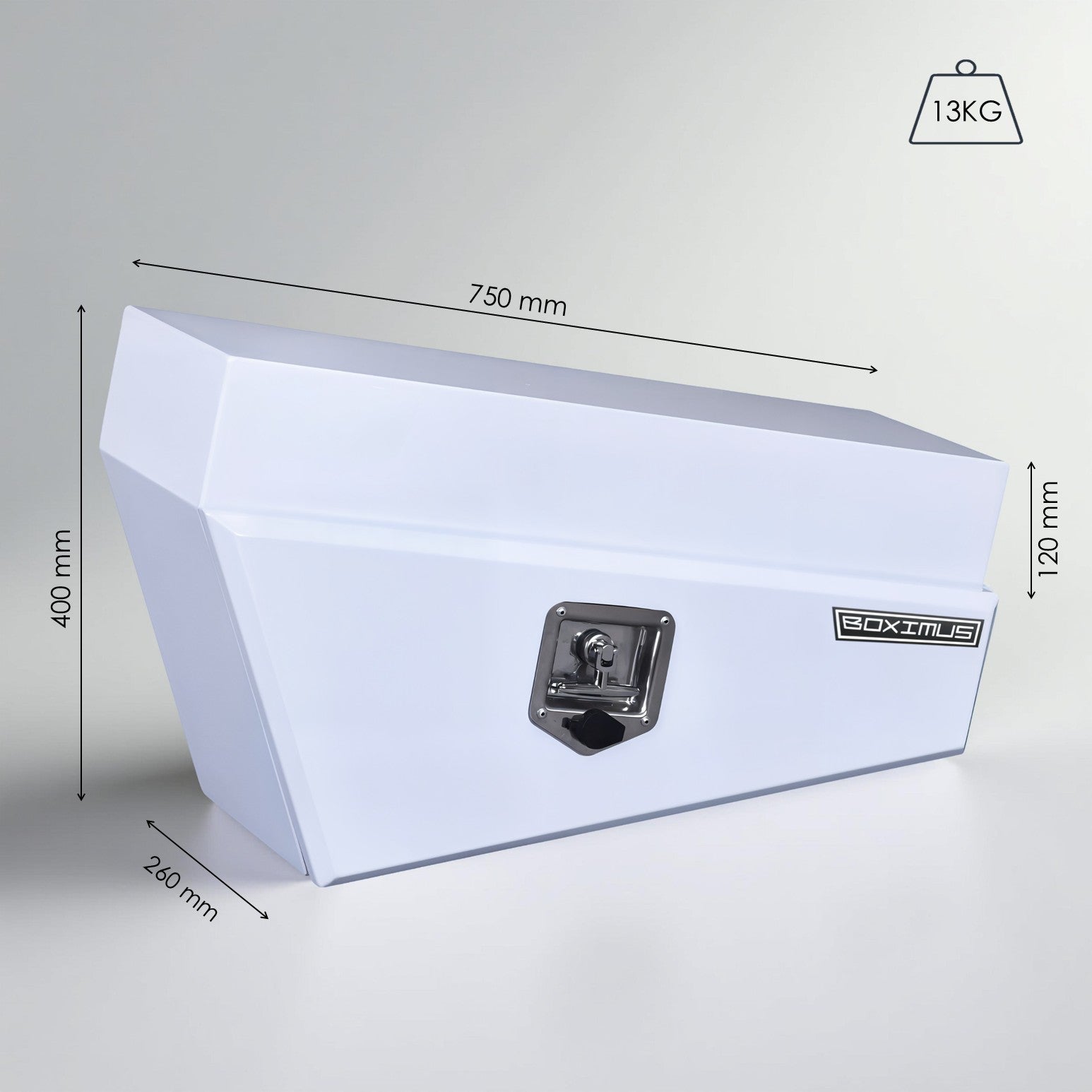 Finished in clean white powder-coat, this heavy-duty steel pair sits snugly under your tray, giving you secure, weatherproof storage right where you need it. Made from 1.5mm thick steel, these boxes are built to last — no flex, no cheap finishes, just solid gear that can take a hit and keep going.